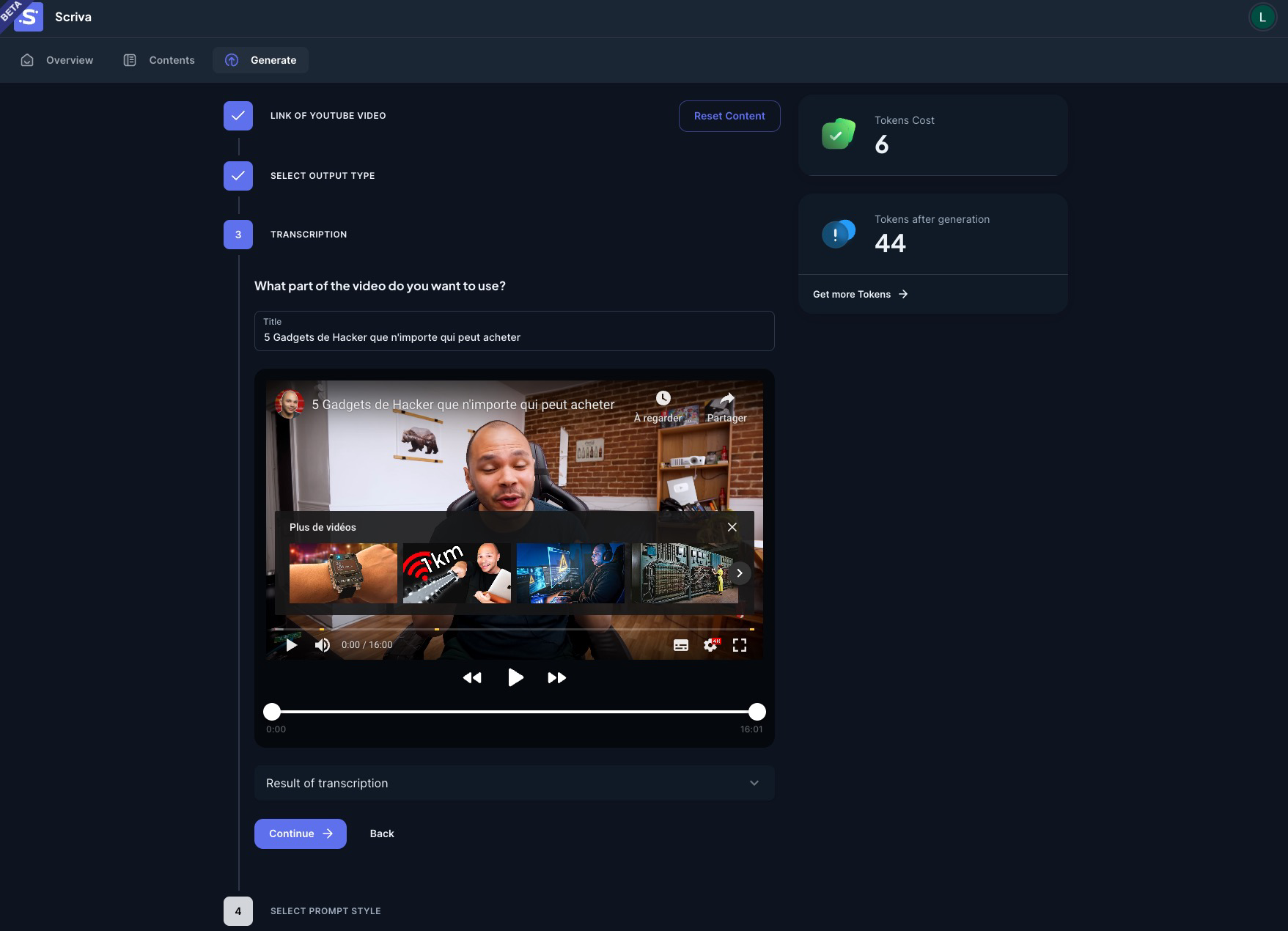Cet outil impressionnant vous donne le contrôle précis du contenu que vous souhaitez générer, vous permettant de spécifier si vous souhaitez transcrire l'intégralité de la vidéo ou une portion sélectionnée.